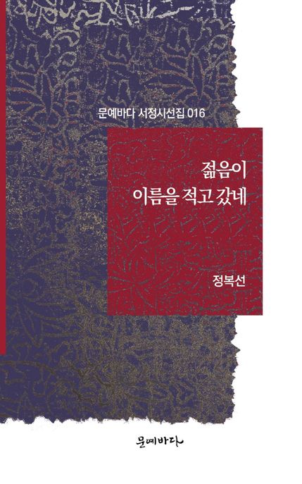 소개: 도서출판 문예바다가 기획한 우리 문단 유명 시인들의 서정시선집 그 열여섯 번째로 정복선 시인의 『젊음이 이름을 적고 갔네』가 출간됐다. 1988년 『시대문학』으로 등단한 정복선 시인은 마르지 않는 샘물 같은 특유의 시적 감성으로 불교적 세계관과 이미지를 바탕으로, 삶의 빛과 어둠, 있음과 없음, 과거와 현재 또는 현재와 미래를 오가며 마음과 존재의 본질에 대한 구도적 사유를 노래함으로써 시로 음악적 자서전을 쓰고 있다.