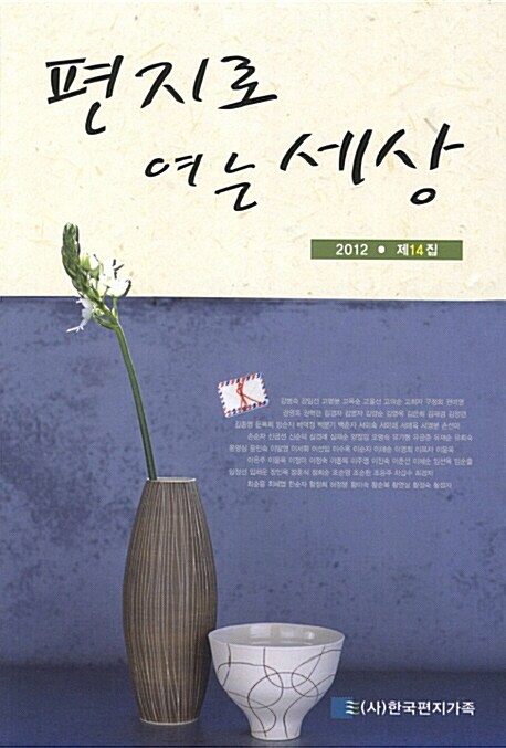 소개: 『편지로 여는 세상(2012 제14집)』은 한국편지가족 전국 아홉 개 지회 회원의 편지를 한데 모은 작품집이다. 훈훈한 인정은 어떤 문학작품에서도 볼 수 없는 따스하고 정겨운 이야기이다. 강병숙, 김재경, 고명분, 배덕정, 유회숙 등 편지 80편을 수록했다.