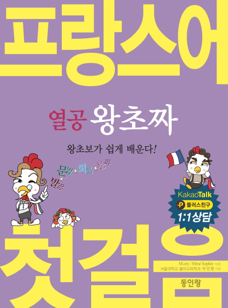 소개: 카톡 상담으로 쉽고 빠르게 배울 수 있다. 카톡으로 쉽게 문의하고 알기 쉽게 구성된 열공 왕초짜 프랑스어 첫걸음 누구나 외국어를 배우면서 이게 뭘까?라는 궁금증은 생기지만, 마땅히 문의할 곳은 별로 없습니다. 저희 동인랑의 "열공"시리즈는 카카오톡 1:1상담을 통해 책에서 궁금하고 물어보고 싶었던 질문들을 묻고 배울 수 있도록 구성되었습니다. 혼자서 가장 쉽게! 기초부터 제대로 알자! 발음+회화+문법을 한방에! 프랑스어는 전 세계 약 43개 이상의 나라에서 사용하는 국제 언어! UN, EU, FIFA등에서 일할 뜻이 있는 사람들이라면 꼭 배워야 할 경쟁력 있는 언어! 실제 원어민이 녹음한 음성을 통해 회화연습을 하며 진정한 프랑스어 회화를 공부하시기 바랍니다.
