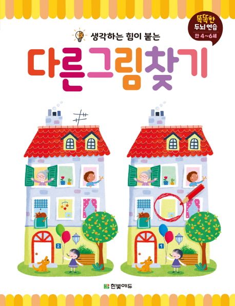 소개: 똑똑한 두뇌를 만드는 비결! 생각하는 힘이 붙는 ‘다른 그림 찾기’ 기존에 있는 책들처럼 단순히 숨은 그림만을 찾는 책이 아닙니다. 문제를 읽고, 그림을 보고 생각하고, 답을 찾고, 답을 표시하는 과정이 있는 ‘그림 찾기’ 책입니다. 아이들이 좋아하는 찾기 그림에 간단하지만 생각하게 만드는 문제를 넣었습니다. 머리를 써야 정답을 찾을 수 있게 설계해 ‘그림 찾기’ 하는 동안 아이의 두뇌는 저절로 계발됩니다. 문제를 이해하는 ‘사고력’, 그림을 보는 ‘집중력’, 정답을 찾는 ‘문제해결력’, 이 모든 것을 똑똑한 두뇌 연습 ? 다른 그림 찾기를 통해 길러줄 수 있습니다.