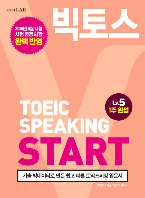 소개: 2019년 6월 이후 토익스피킹 시험 규정 변경 사항 완벽 반영! 만능답변패턴과 최신 유형 모의고사로 일주일 만에 끝내는 빅토스 토익스피킹 Lv.7·8기출 빅테이터와 만사형통팁을 모은 빅토스 라인업의 실전서!1주 만에 레벨 7·8 고득점을 만드는 조앤박 토익스피킹 훈련소의 실전 코스토익스피킹 고득점을 위한 초강력 & 초단기 목표 달성 훈련 시스템시원스쿨LAB에서 선보이는 토익스피킹 교재인 빅토스는 최신 기출문제 분석에 기반을 둔 콘텐츠 구성으로 시험에 필요한 것만 학습하여 단시간에 목표점수를 달성하게 도와드립니다.■ 토익스피킹 기출문제 빅데이터 분석을 통한 최신 유형 모의고사로 실전 감각 극대화!■ 빈출부터 돌발 문제까지 ‘만사형통 답변 패키지’로 최단기간 고득점 달성!