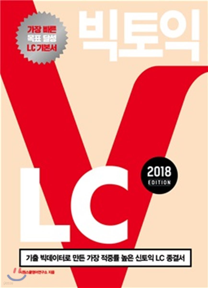 소개: 기출 빅데이터로 만든 적중률 높은 토익 LC 종결서- 토익 기본서, 비법서, 실전서가 모두 이 한 권에!!토익은 ‘기술’이 아니다!빅데이터에 근거한 토익의 새로운 패러다임1. 단순 스킬과 기술로는 고득점을 할 수 없다.여전히 시중의 많은 교재들이 구토익에서나 통하던 스킬만을 강조하고 있다. 하지만 수험자들이 토익을 어려워하는 진짜 이유는 다양한 의사소통 상황에 대한 순발력과 빈출 어휘 및 표현에 대한 지식이 부족하고, 다른 말로 바꾸어 말하는 Paraphrasing에 익숙하지 않아서이다. 「빅토익 LC 2018 Edition」에서 제시하는 빈출 필수 어휘와 구문, Part 2 의외의 응답, Part 3, 4 빈출 Paraphrasing 연습을 집중적으로 학습한다면 토익 고득점이 빠른 시일 내에 가능하게 될 것이다. 2. 「빅토익 LC 2018 Edition」은 최근 경향까지 100% 분석/반영하였다.