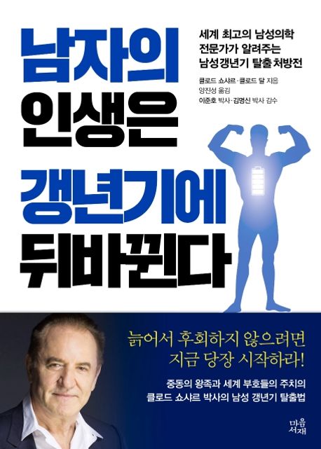 소개: “예고 없이 다가오는 남자의 갱년기가 더 무섭다!” 세계 최고의 남성의학 전문가가 알려주는 남성 갱년기 탈출법과 노화예방의 비밀세계 최고의 남성의학 전문가들이 소개하는 남성 갱년기 탈출법과 나이보다 젊게 사는 비결을 담은 책이 출간되었다. 책의 저자인 클로드 쇼샤르 박사는 노화예방 의학이 생소하던 1978년, 프랑스 파리에서 세계 최초로 노화예방 클리닉을 설립해 남성 갱년기와 노화예방 의학을 선도했다. 저자들은 이제 막 갱년기에 접어든 남성들과 이미 겪고 있는 남성들이 갱년기를 극복하고 노화를 효과적으로 예방하는 비밀을 아낌없이 전수한다.이 책은 갱년기 자가진단부터 호르몬의 변화로 나타나는 각종 증상과 예방책을 소개하고 식단 관리, 운동, 스트레스와 수면 관리, 건강보조식품 섭취 등 남성 갱년기를 확실하게 탈출하는 비결을 하나부터 열까지 상세히 알려준다. 또한 젊음의 활력과 건강을 되찾기 위해 꼭 필요한 호르몬 요법, 저자들이 직접 실천하고 있는 노화예방 프로그램까지 남성 갱년기 탈출을 위한 최고의 처방전을 제시한다. 이 책에서 알려주는 방법대로 따라가기만 한다면 남성 갱년기를 가뿐히 탈출하는 것은 물론, 청년의 자신감을 유지하고 진정한 남성성을 발휘할 수 있을 것이다.