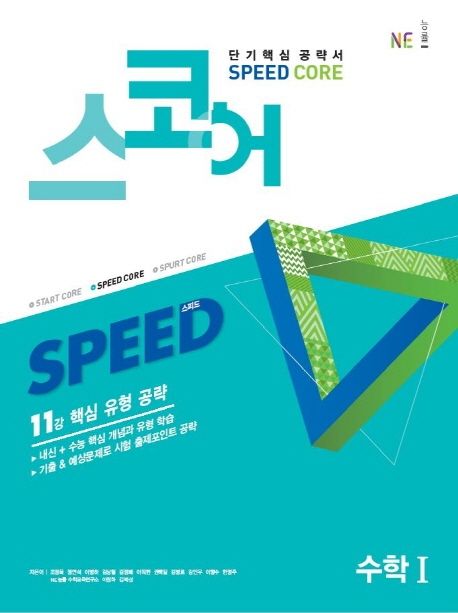 소개: 1) 소개글스피드(Speed)로 시간 관리! 코어(Core)로 점수 관리 - 2~4주 학습으로 〈 수학Ⅰ〉의 핵심을 빠르게 학습하는 단기학습 공략서로, 짧은 시간에 예습 및 복습에 효과적인 교재입니다. 바쁜 시간을 쪼개서 공부하는 수험생들을 위해 단기간 학습 효과를 최대화 시킬 수 있도록 군더더기 없이 깔끔하게 구성하였습니다. 꼭 알아야 할 필수 개념, 시험에 자주 나오는 빈출 유형 문제 엄선하여 수록함으로써 핵심을 정리할 수 있도록 하였습니다. 2) 특장점 11강으로 확실하게! 핵심을 쏙 뽑아 알차게 학습-교과 내용을 빠르게 정리할 수 있도록 11강으로 구성-각 강마다 3~4개의 대표 유형과 유형별 상, 중, 하의 다양한 난이도의 문제 수록-단기 학습에 최적화된 학습량, 단원의 핵심을 한눈에 파악할 수 있는 깔끔하고 보기 쉬운 구성 꼭 나오는 필수 문제 수록! 핵심 유형 집중 공략 -9종 교과서에 수록된 핵심 유형과 기출문제를 분석하여 꼭 알아야 할 필수 핵심 유형 선정-유형별 대표 문제를 엄선하여 수록하고, 핵심을 제대로 파악할 수 있도록 출제포인트와 공략포인트 제시 내신에서 수능까지! 실전 감각력 향상 -내신, 수능, 평가원, 교육청 기출 문제를 철저 분석하여 실전 대비 예상 문제 수록 -응용력을 더해 주는 실제 기출 문제로 실전 감각 최종 점검